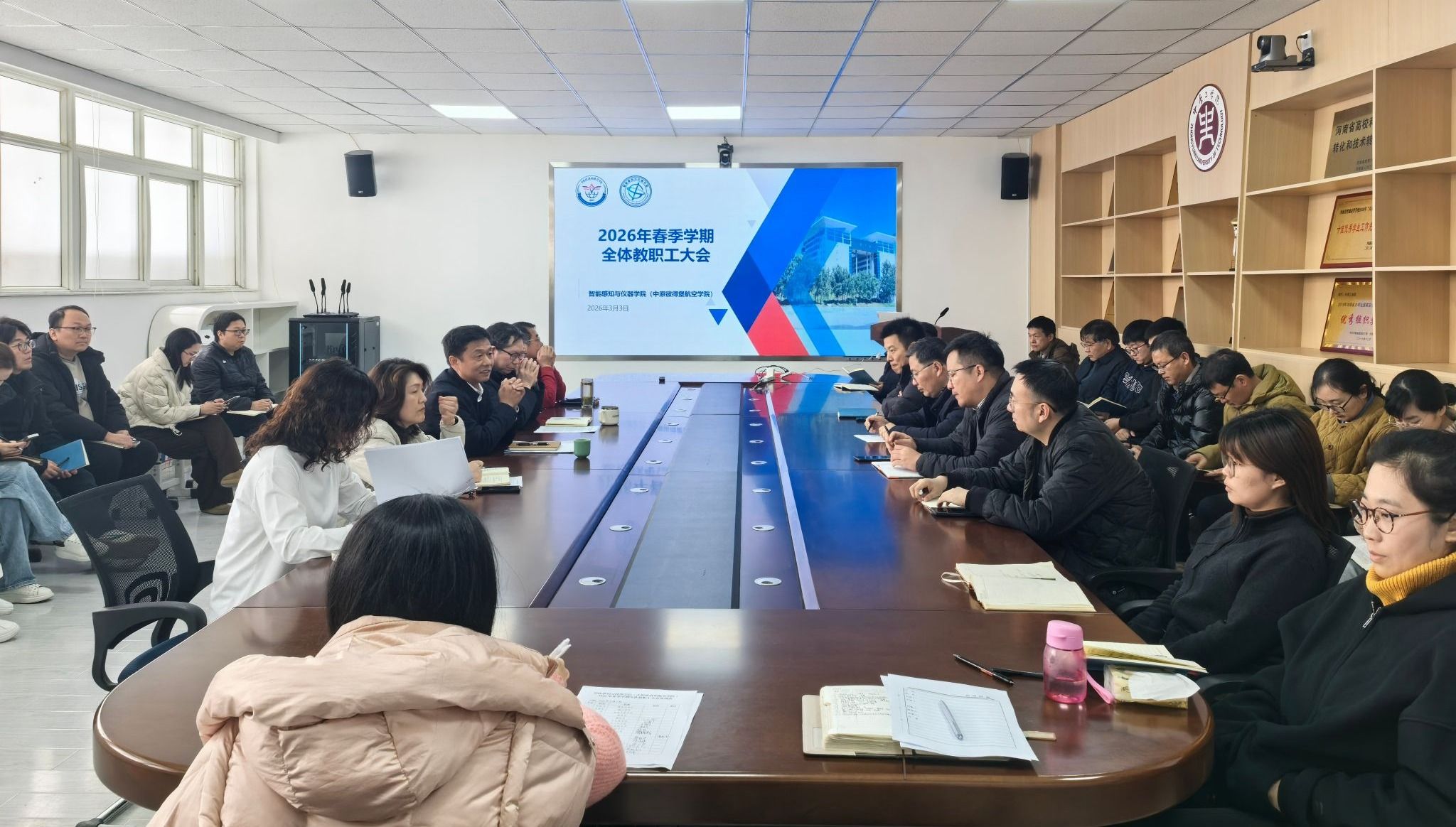 (中原彼得堡航空学院)召开新学期工作会议,全面部署2026年重点工作。学院全体领导班子成员和教职工参加会议,会议由党总支书记轩信飞主持。